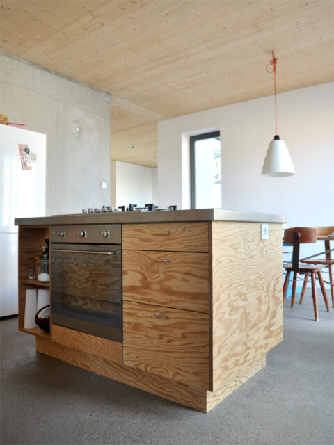 Arbeiten und Wohnen sollten hier luftig voneinander getrennt werden. Sperrholz weiss. …