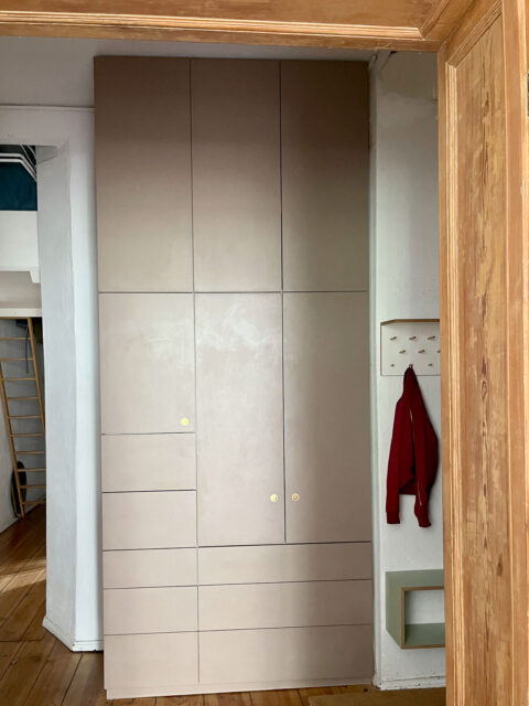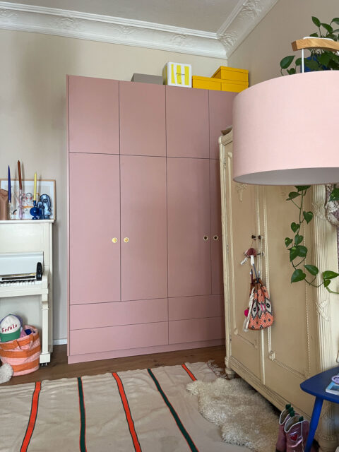Alte Schränke sind super schön, Stauraum ist in neuen oft leichter zu organisieren. Die Farbe „Guava“ verträgt sich auch mit den alten Tanten. …
