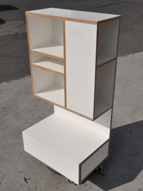 Maximale Nutzbarkeit durch Schiebetüren auf Vorderseite UND Rückseite. Weißes Sperrholz auf Rollen. …