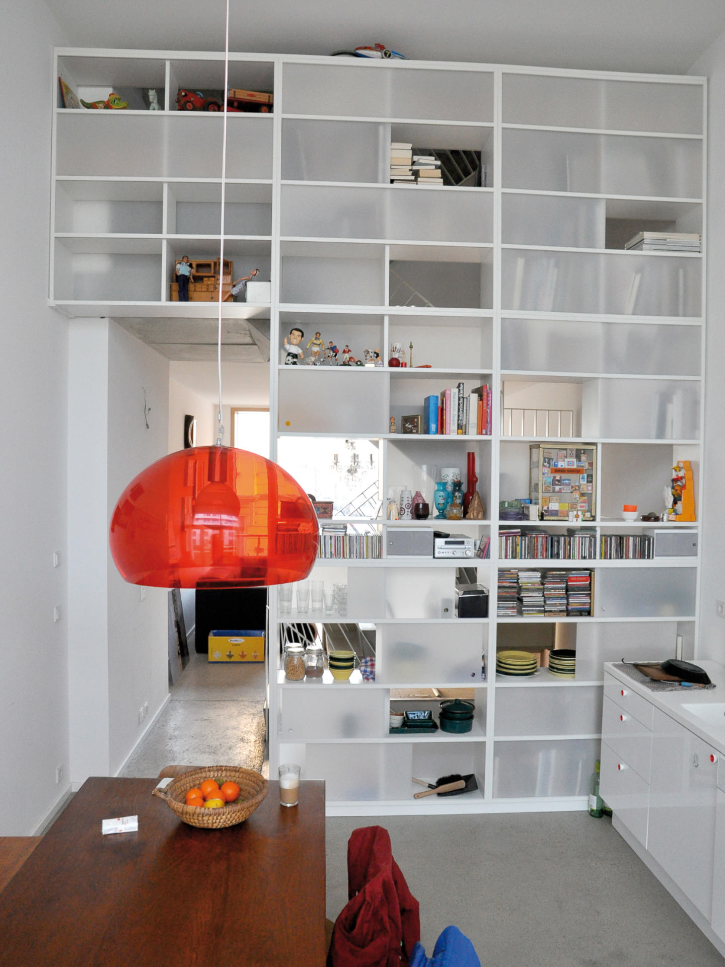 Arbeiten und Wohnen sollten hier luftig voneinander getrennt werden. Sperrholz weiss. …