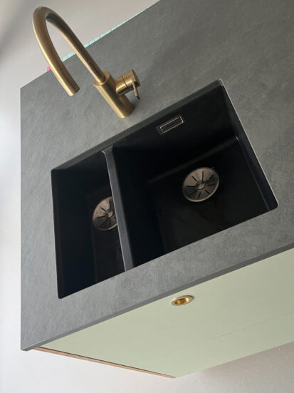 Schwarzer Schiefer rundet die Küche optisch perfekt ab.